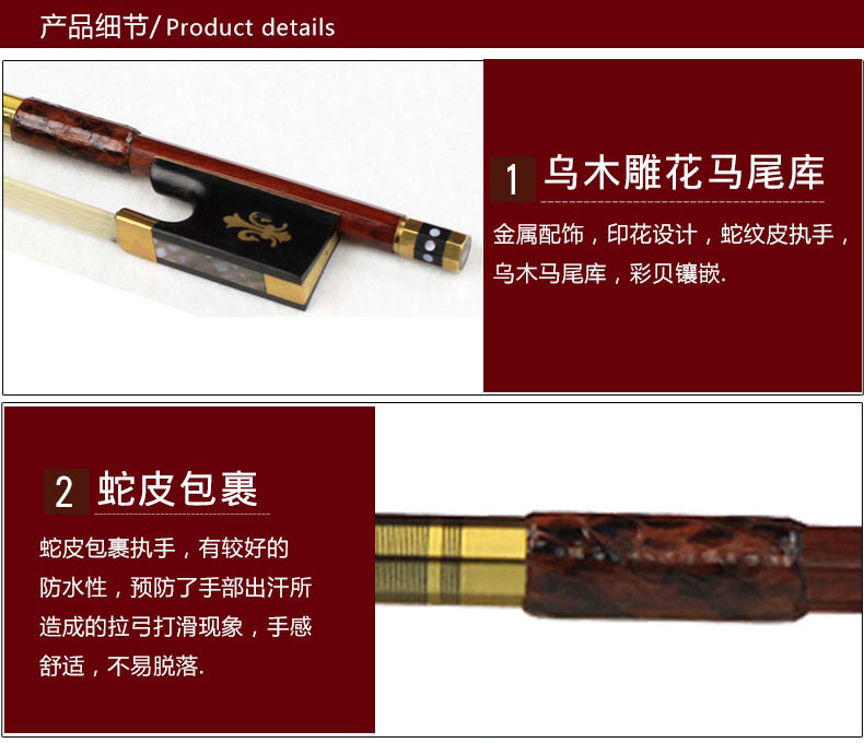 G213金絲蛇紋蘇木小提琴弓中提琴弓大提琴弓